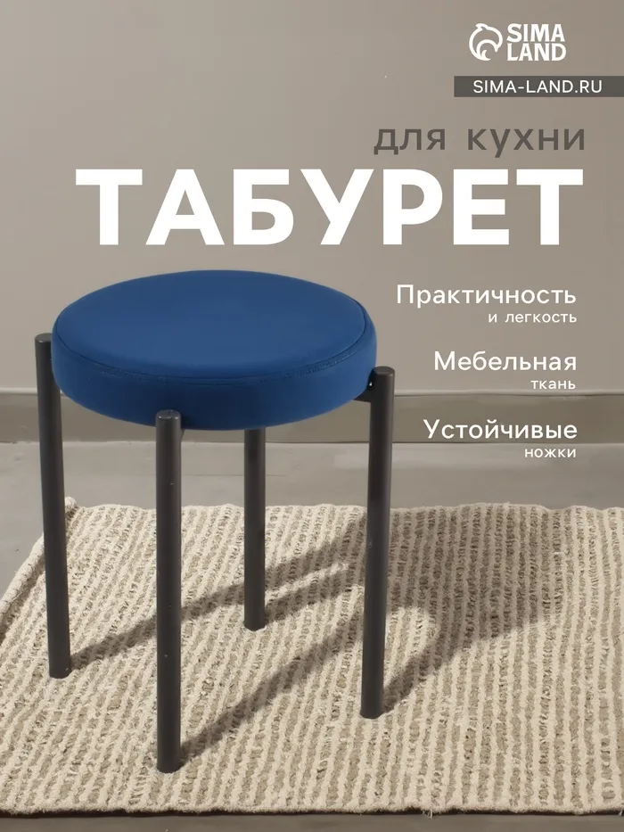 Табурет мягкий для кухни «Оливия» Velutto 26, цвет океан — Характеристики