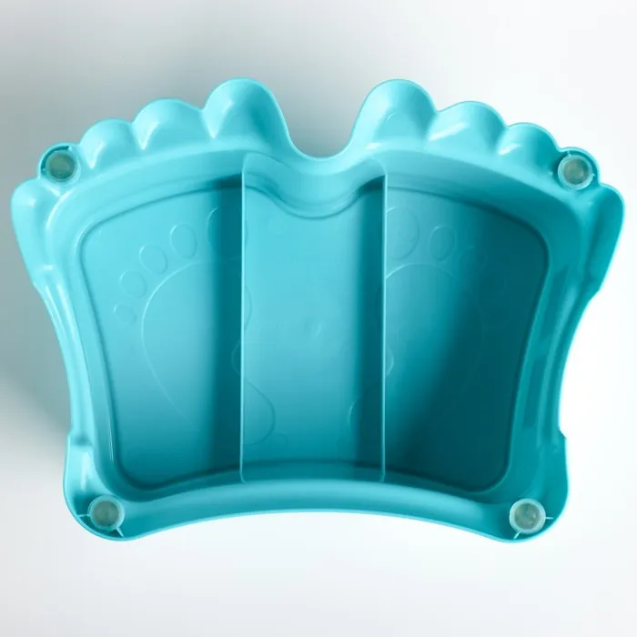 Рельефный узор в виде забавных пяточек, защитит ножки малыша от скольжения по поверхности табуретки-помощника.