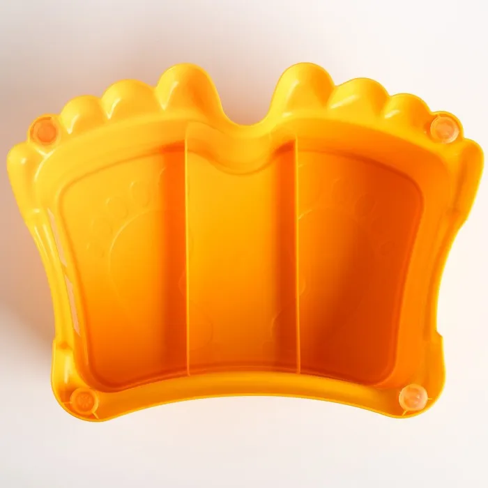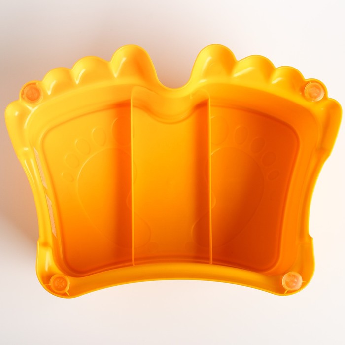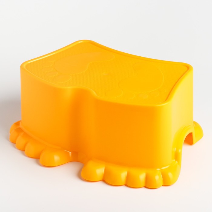 Рельефный узор в виде забавных пяточек, защитит ножки малыша от скольжения по поверхности табуретки-помощника.