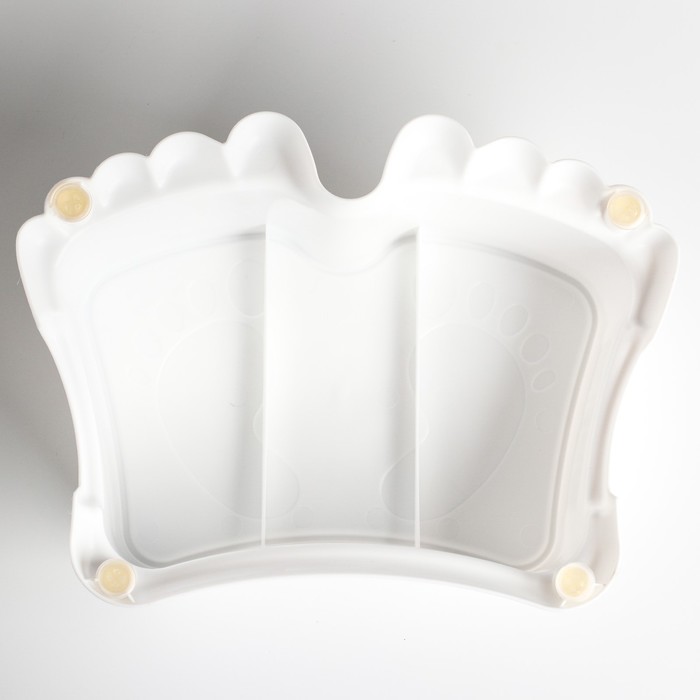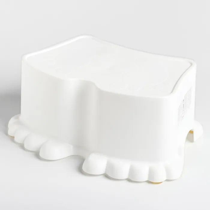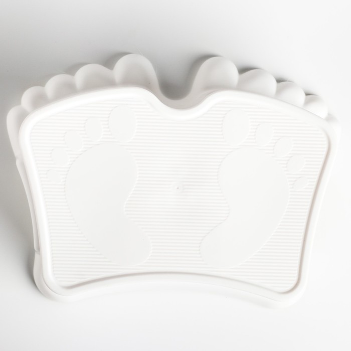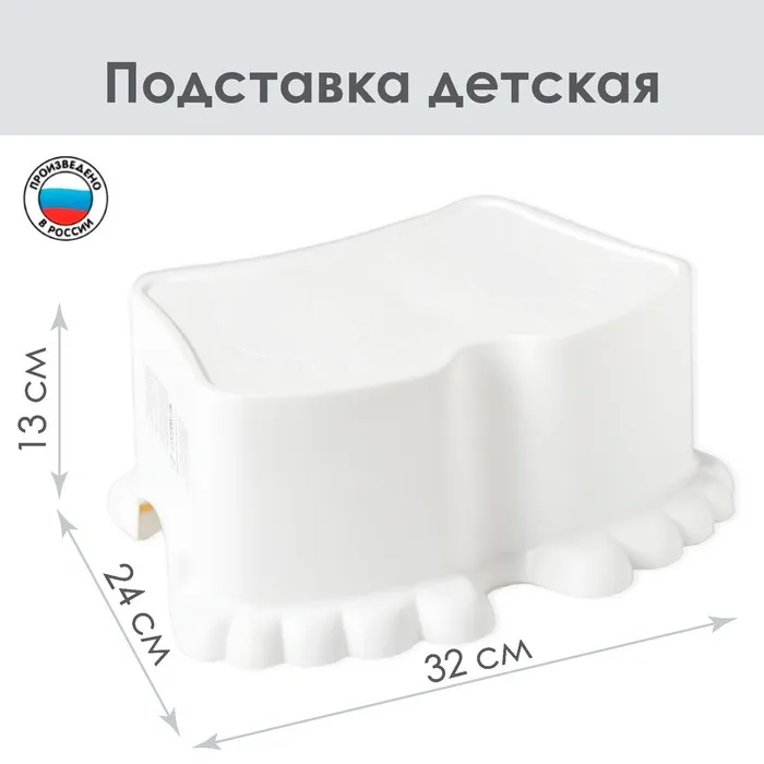 Рельефный узор в виде забавных пяточек, защитит ножки малыша от скольжения по поверхности табуретки-помощника.
