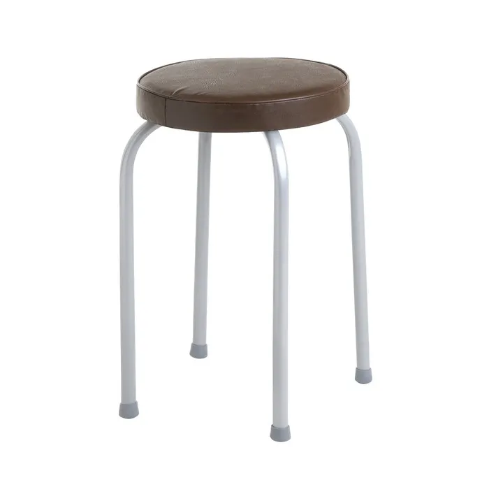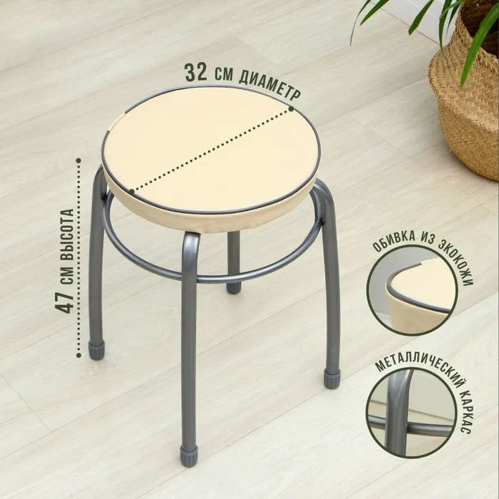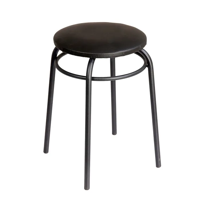 Табурет изготовлен из облегчённой мебельной трубы. Мягкое обтянутое искусственной кожей сиденье диаметром 32 сантиметра порадует всех любителей комфорта. Специальная конструкция ножек позволяет компактно сложить мебель «друг на друга», существенно сэкономив пространство.