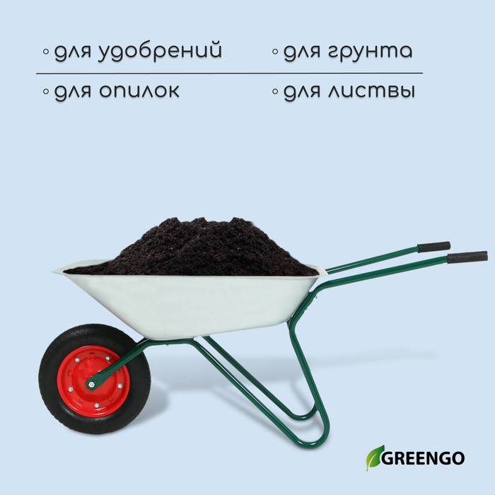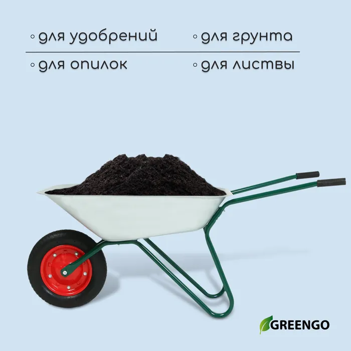Тачка садовая, одноколёсная: груз/п 120 кг, объём 65 л, Greengo — Характеристики