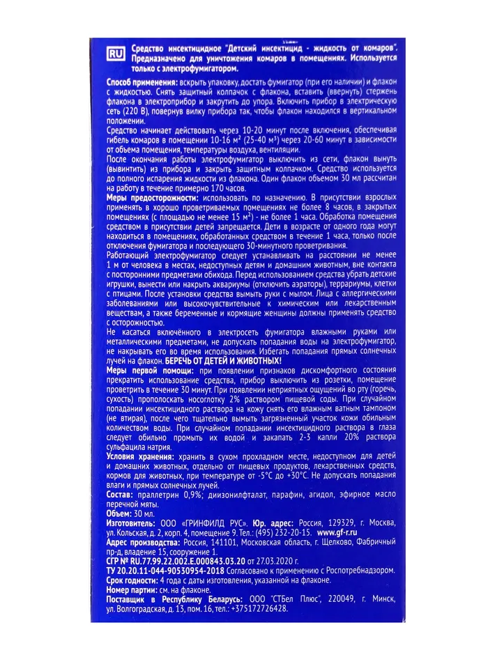 Тайга Детский Ликвид жидкостной наполнитель от комаров 20 ночей — Характеристики
