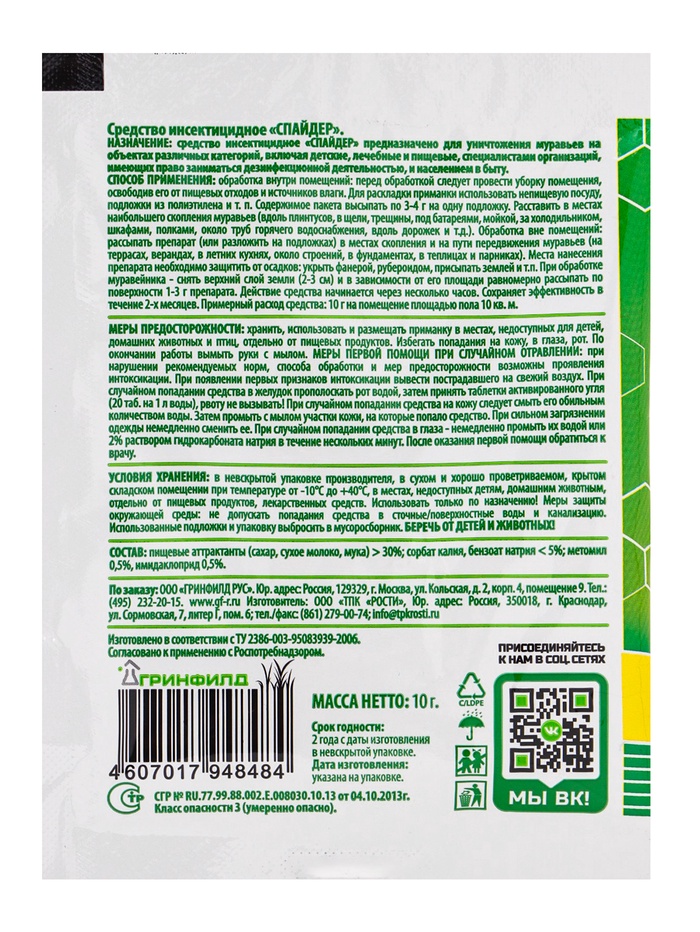 Тайга гранулы от муравьев 10 г. — Характеристики