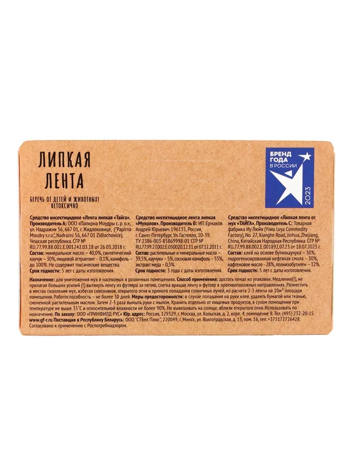 Тайга Хит! липкая лента от мух в коробочке 4 ед. — Характеристики