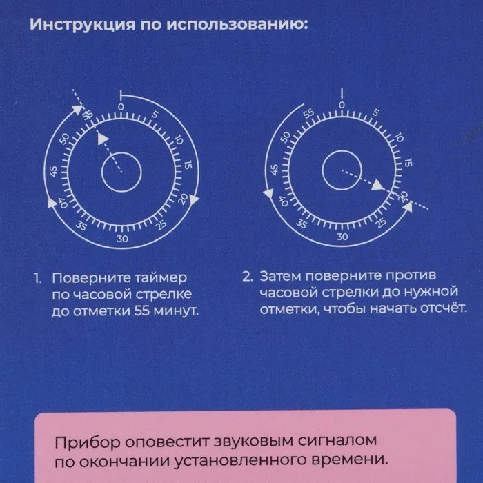 Диапазон работы: 1 час. Выберите нужное время и заводите таймер. Когда время закончится, прибор издаст громкий звук.