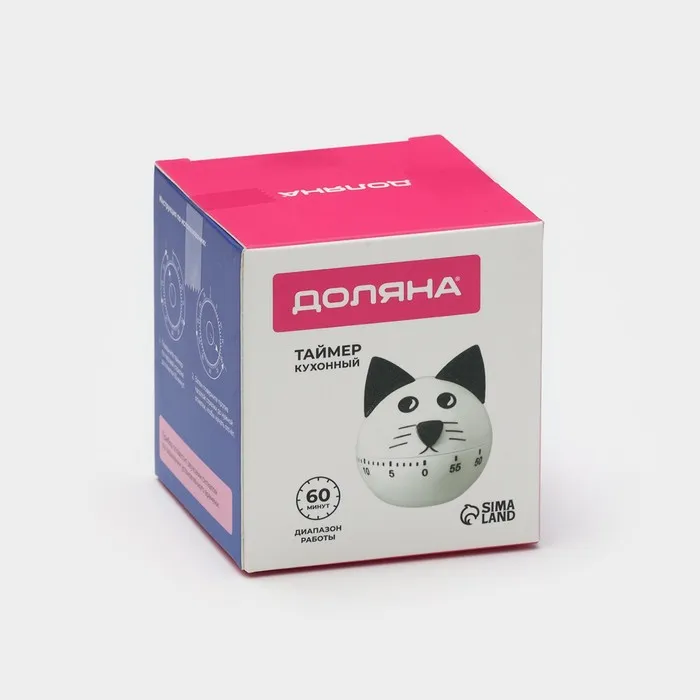 Таймер механический Доляна «Котёнок», кухонный, белый — Характеристики
