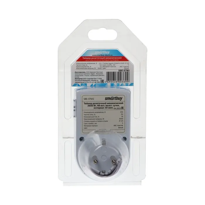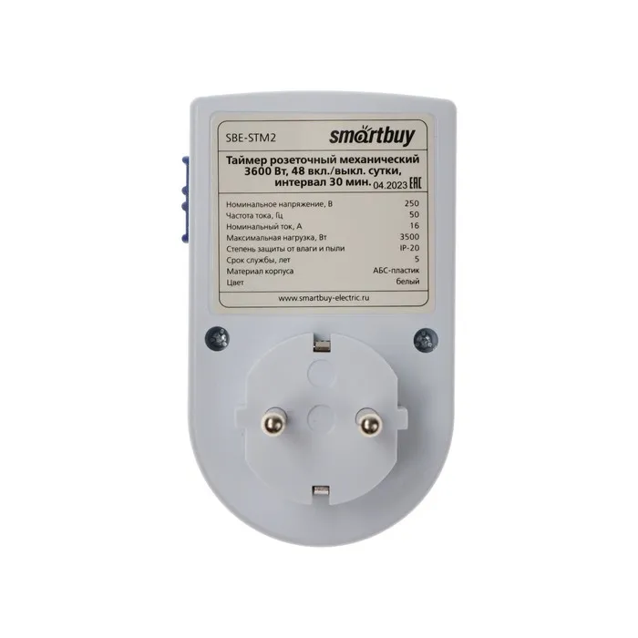 Таймер розеточный механический Smartbuy, 3600 Вт, 48 включений/выключений в сутки, интервал 30 минут — Характеристики