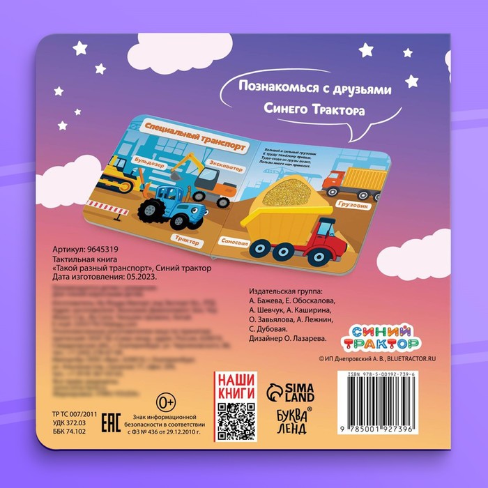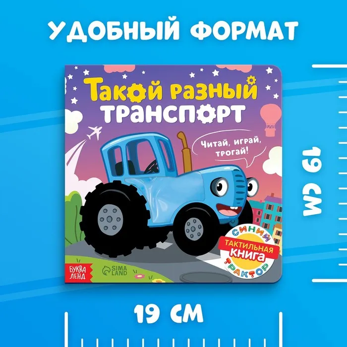 Тактильная книжка «Такой разный транспорт», 12 стр., Синий трактор — Характеристики