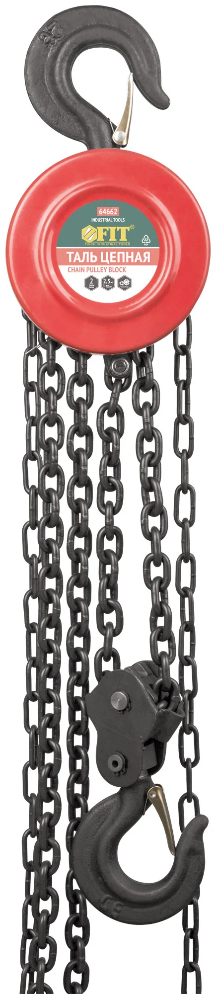 Используйте цепную таль FIT для безопасного подъема и опускания грузов до 2 тонн на стройплощадках и в мастерских. Длина цепи 2,5 м позволяет работать на высоте, обеспечивая удобство и эффективность.