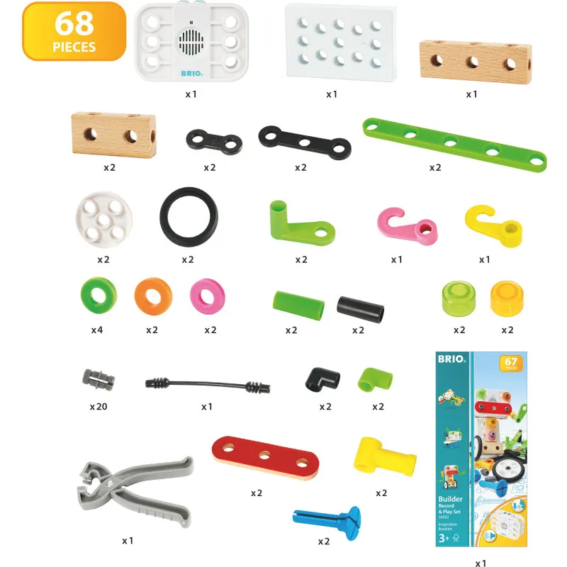 Набор Brio Builder 34592 оживит ваши конструкции. Стройте все, что только сможете придумать, и завершайте свои изобретения, записывая и воспроизводя свои звуки!