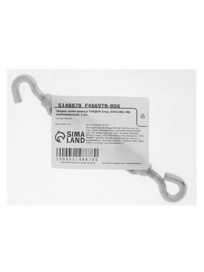 Талреп крюк-крюк ТУНДРА krep, DIN1480, М6, оцинкованный, 1 шт.