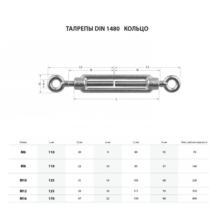 Талреп крюк-кольцо ТУНДРА krep, DIN1480, М6, оцинкованный 1 шт. — Характеристики