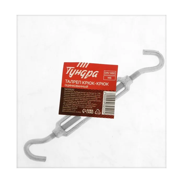 Талреп крюк-крюк ТУНДРА krep, DIN1480, М6, оцинкованный, 1 шт. — Характеристики