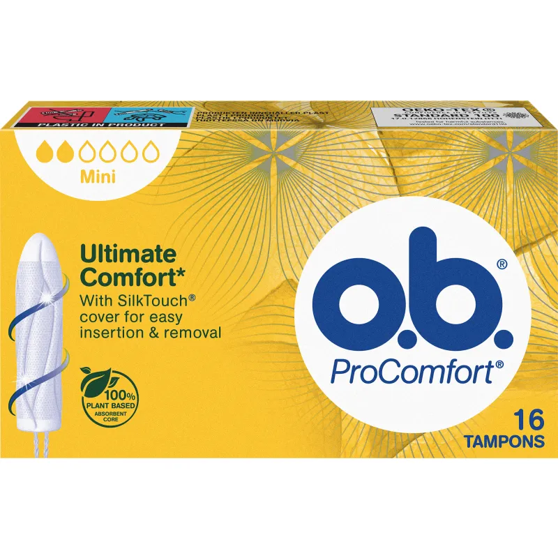 ProComfort™ Mini – это небольшой и тонкий тампон с обтекаемой головкой, что значительно упрощает процесс введения. Они идеально подходят для использования в дни с особенно скудными выделениями и для девочек, только начинающих пользоваться тампонами. Упаковка содержит 16 штук.