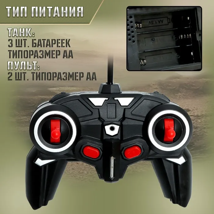 - Танку требуется 3 батарейки типа AA. Пульт работает от 2 батареек типа AA.