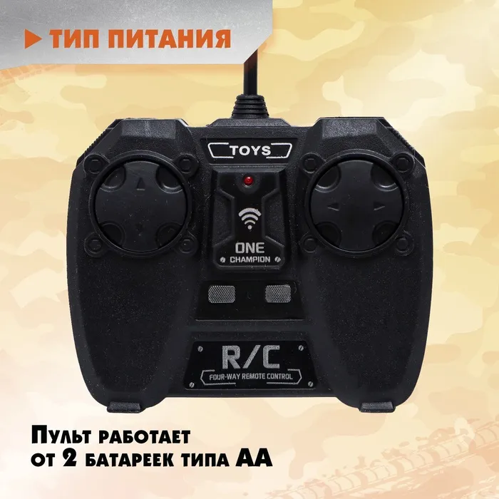 - Полный контроль движения: радиус действия пульта управления достигает 30 метров, что даёт ребёнку свободу перемещения. Танк едет вперёд, назад, поворачивает влево и вправо — управление простое и интуитивное.