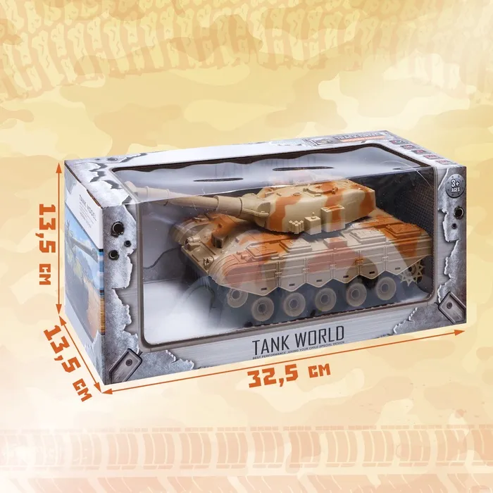 Вперёд, на поле боя! Радиоуправляемый танк «Атака» – это настоящая боевая машина в миниатюре. Световые и звуковые эффекты создают атмосферу настоящих военных действий, а песочный камуфляж делает его ещё более реалистичным.