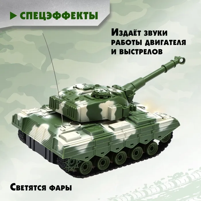 Танк радиоуправляемый «Атака», световые и звуковые эффекты, работает от аккумулятора, цвет зелёный — Характеристики