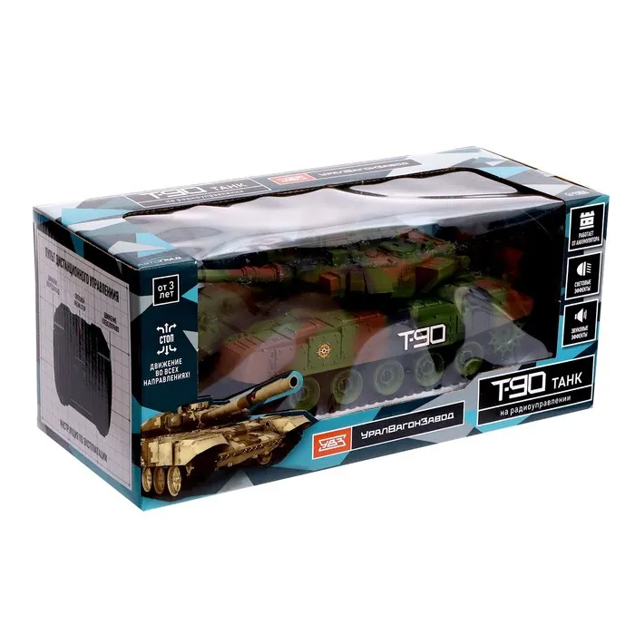 Радиоуправляемый танк Т-90 — боевая машина, которая впечатлит любителя военной техники своим реалистичным дизайном и функциональными характеристиками.