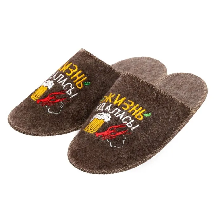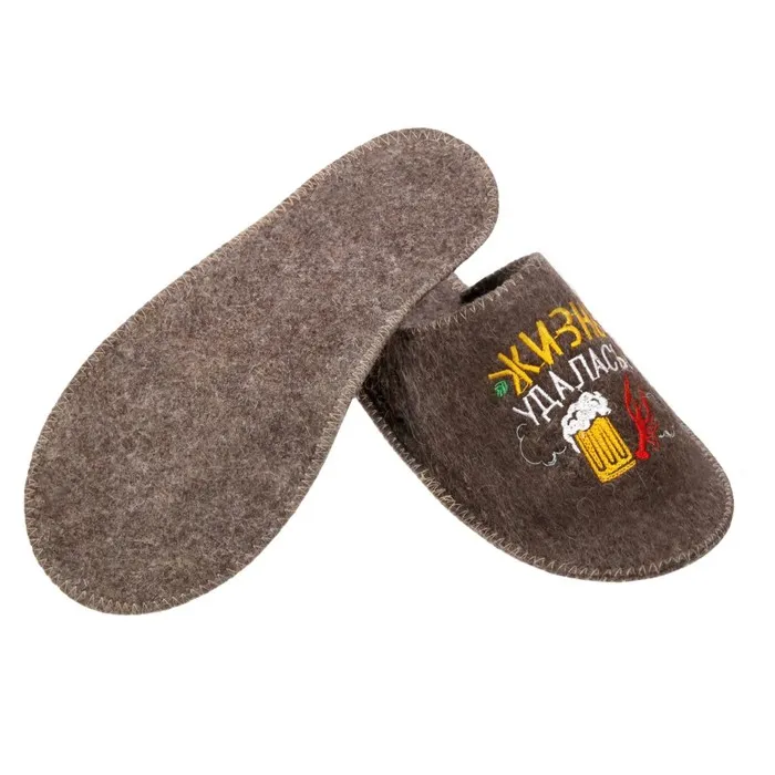 Войлочные тапочки с округлым закрытым носком обеспечивают комфорт и безопасность во время посещения бани и сауны. Натуральный войлок отлично впитывает излишки влаги, поддерживает оптимальную температуру, расслабляет и массирует стопу. Изделия выполняют также и гигиеническую функцию, что немаловажно при посещении общественных заведений.