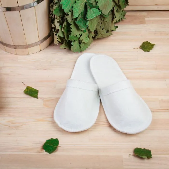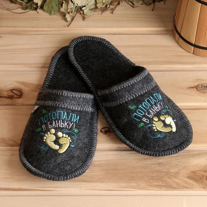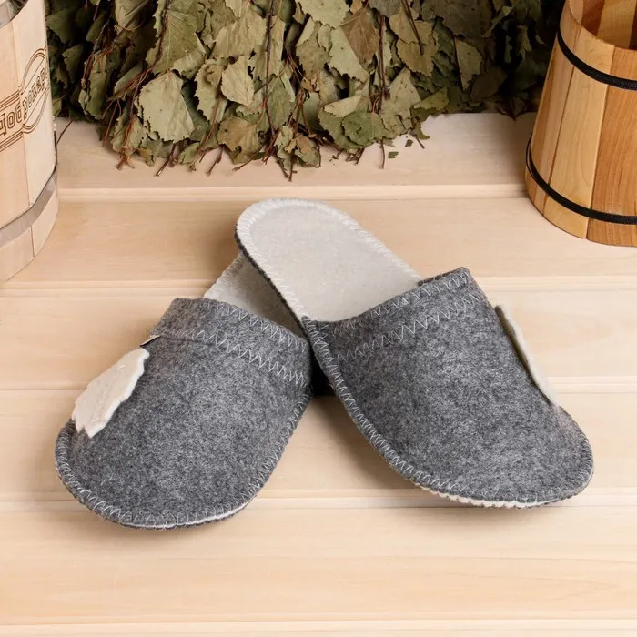 Войлочные тапочки с округлым закрытым носком обеспечивают комфорт и безопасность во время посещения бани и сауны. Натуральный войлок отлично впитывает излишки влаги, поддерживает оптимальную температуру, расслабляет и массирует стопу. Изделия выполняют также и гигиеническую функцию, что немаловажно при посещении общественных заведений.