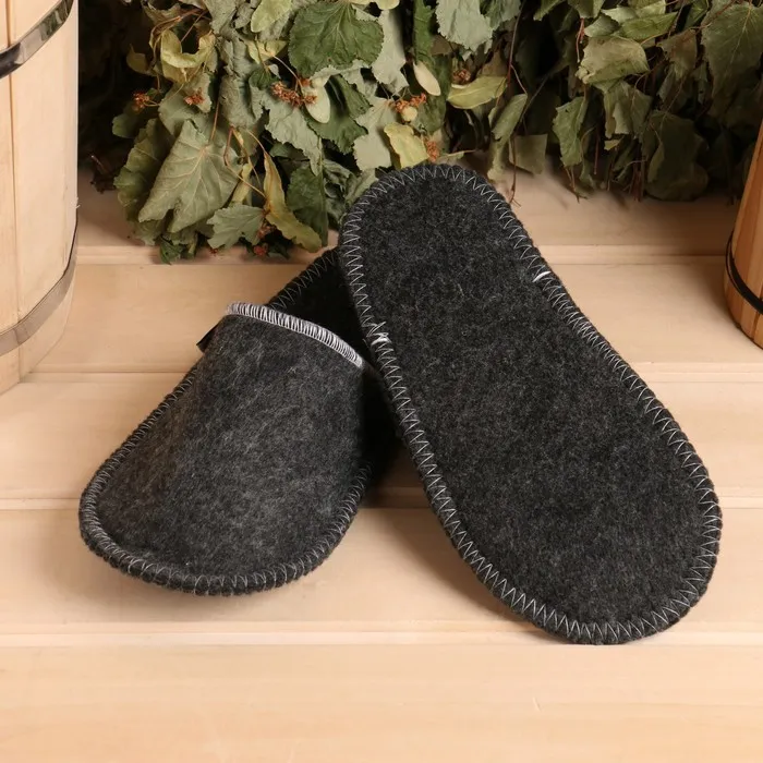 Тапочки для бани «Листок», полиэфир 70%, шерсть 30%, серые, «Добропаровъ»