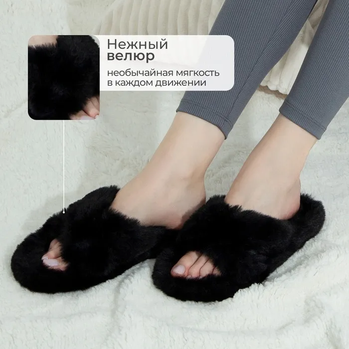 Тапочки женские с открытым носом LoveLife, размер 36, чёрные — Характеристики