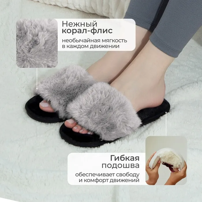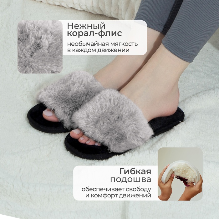 Тапочки женские с открытым носом LoveLife, размер 37-38, серые — Характеристики
