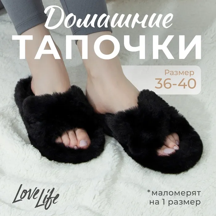 Тапочки женские с открытым носом LoveLife, размер 40, чёрные — Характеристики