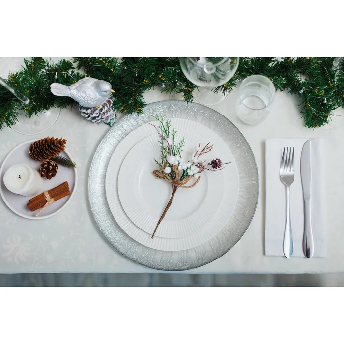 Подстановочная тарелка Magistro «Бурлеск» серебристого цвета с диаметром 33 см станет отличным дополнением к вашему столу. Она прекрасно подойдёт для сервировки различных блюд, будь то закуски, основные блюда или десерты. Тарелка выполнена из высококачественного стекла, которое устойчиво к царапинам и не впитывает запахи. Это обеспечивает долговечность и лёгкость ухода за посудой. Серебристый цвет тарелки придаёт ей роскошный вид и делает её идеальным выбором для особых случаев и торжеств.