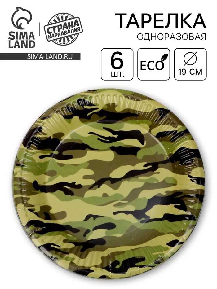 Тарелка бумажная «Камуфляж», в наборе 6 штук — Характеристики