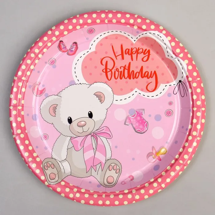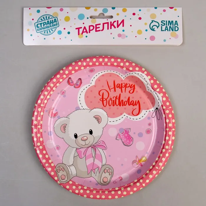 Тарелка бумажная одноразовая «С днём рождения!», 18 см, в наборе 6 штук, розовая — Характеристики