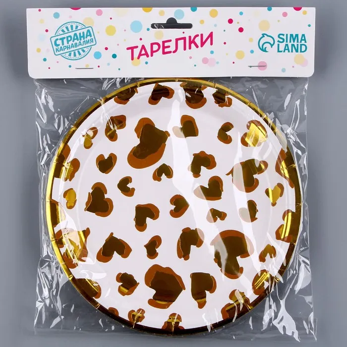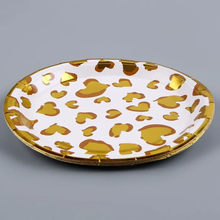 Тарелка бумажная одноразовая «Золотые сердца», в наборе 6 шт. — Характеристики