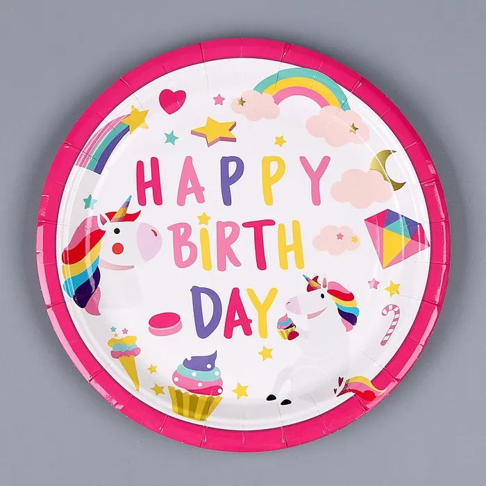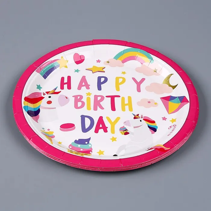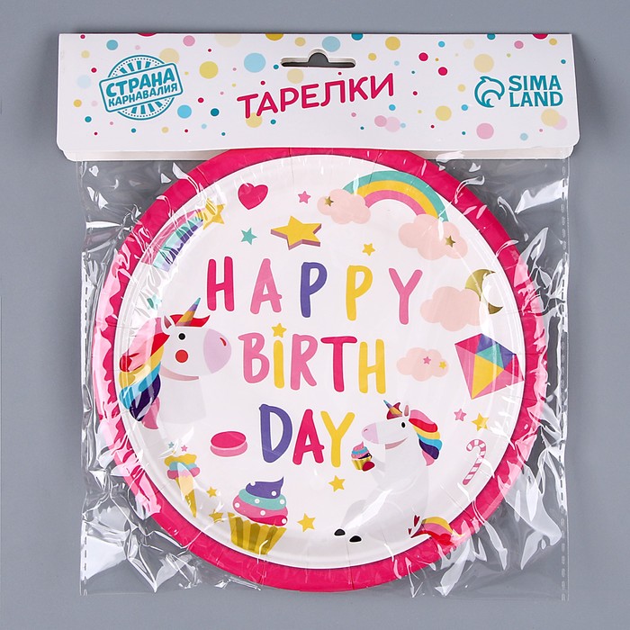 Тарелка бумажная «С днём рождения», единорог, в наборе 6 шт. — Характеристики