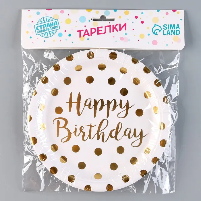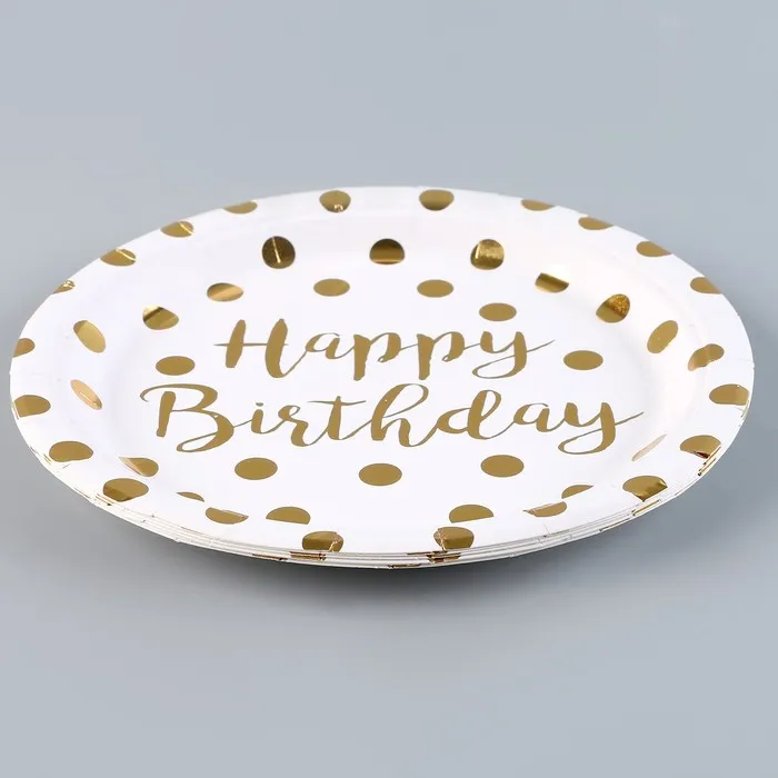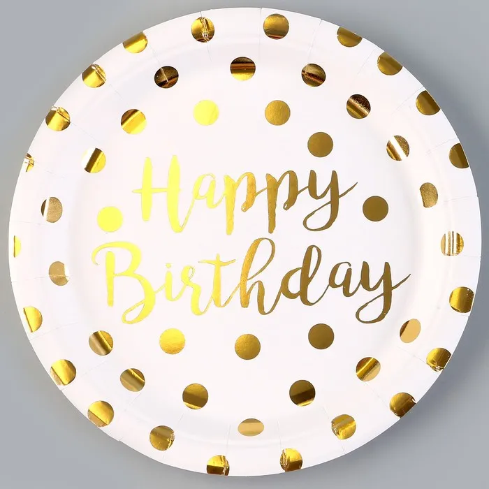 Тарелка бумажная «С днём рождения», горох, в наборе 6 шт., цвет золото — Характеристики