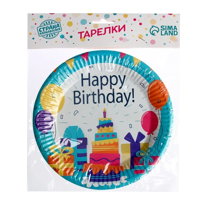 Тарелка бумажная «С Днём Рождения», подарки, набор 6 шт. — Характеристики