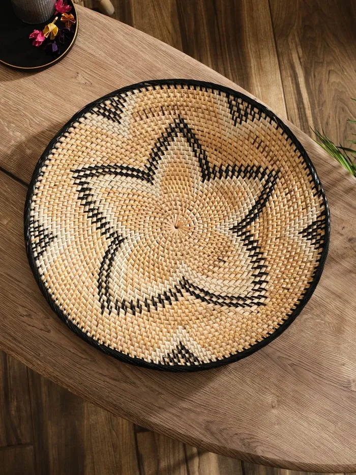 Позвольте себе насладиться эстетикой природной гармонии с декоративной тарелкой, которая станет изысканным акцентом в вашем интерьере. Её плетёная структура из натурального ротанга и пластика создаёт уникальный визуальный эффект, сочетающий в себе лёгкость и прочность. Чёрно-белая цветовая гамма подчеркивает современный дизайн, делая её универсальным элементом декора для любого стиля.