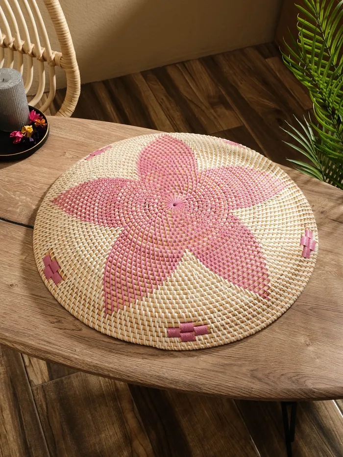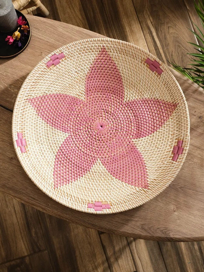 Декоративная плетёная тарелка в форме цветка — это стильный аксессуар, который добавит уюта и природной гармонии в ваш интерьер. Её нежный розовый оттенок и растительная тематика создают атмосферу тепла и свежести, а натуральный ротанг в сочетании с пластиком делает изделие одновременно лёгким и прочным. Идеально подходит для тех, кто ценит эстетику и функциональность.