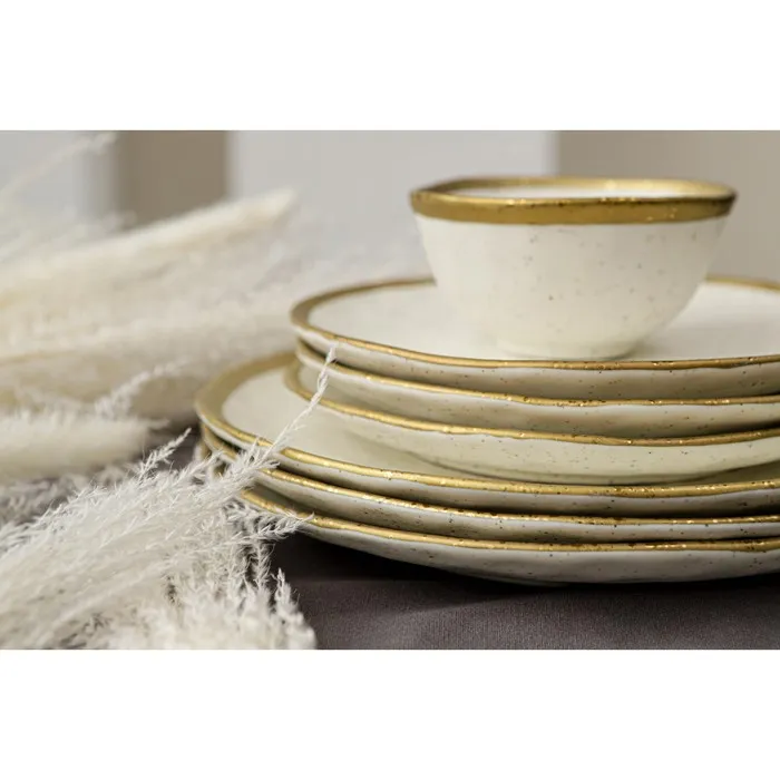 Посуда серии Magistro Poursephona — это современная фарфоровая посуда. В оформлении серии превалируют два цвета – бежевый оттенок фарфора и роскошное золото в виде широкой окантовки предметов. Идеально подходит как для формального обеда, так и для торжеств по особым случаям. Лаконичные формы, золотая окантовка, разноцветные вкрапления придают изделиям из фарфора одновременно необычный и современный вид.