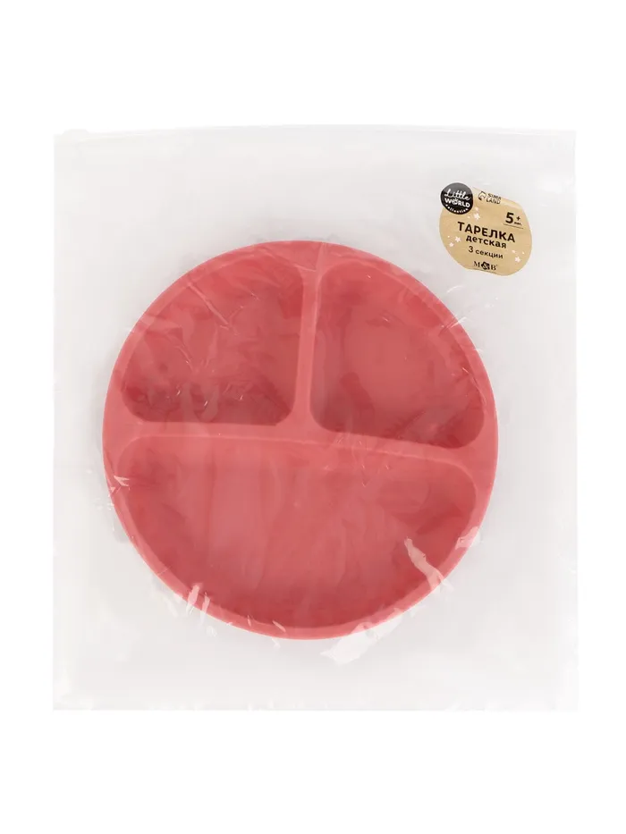 Тарелка детская 3 секции, M&B, 22,5х19,5х3, силикон, вишневый — Характеристики