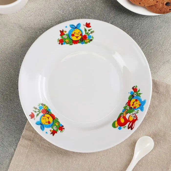 Технология деколь гарантирует сохранность рисунка после множества циклов использования. Белый фон подчёркивает яркость красок, делая персонажа центральным элементом композиции. Тарелка становится частью ежедневных ритуалов — от завтраков перед садиком до воскресных семейных обедов. Прочность материала позволяет использовать её как для сервировки, так и для творческих занятий по мотивам сказок.