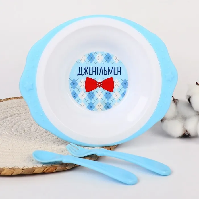 Тарелка детская M&B «Джентельмен», на присоске 250 мл, в наборе вилка, ложка — Характеристики