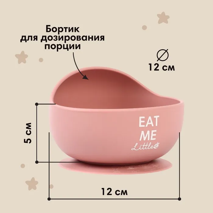 Тарелка детская на присоске 350мл., M&B, 12хх12х8, силикон, пыльная роза — Характеристики