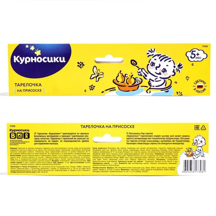 Тарелка детская на присоске, глубокая, 400 мл, от 5 мес., 17.5×17.5×4.3, МИКС — Характеристики