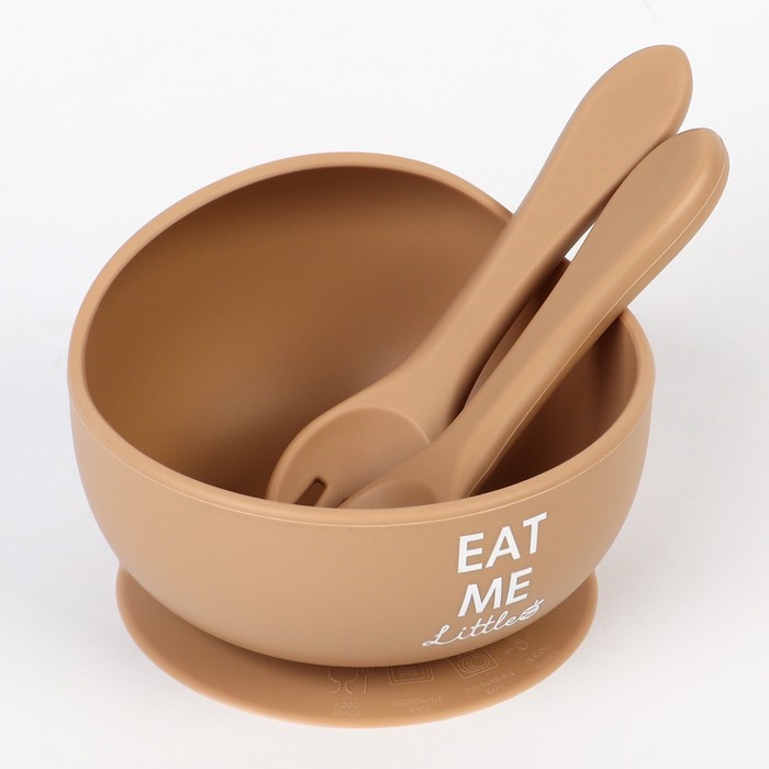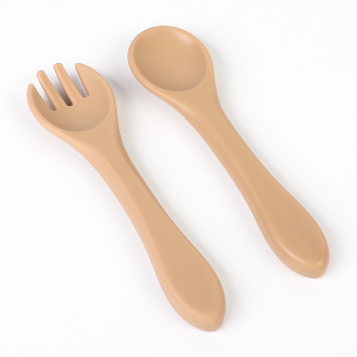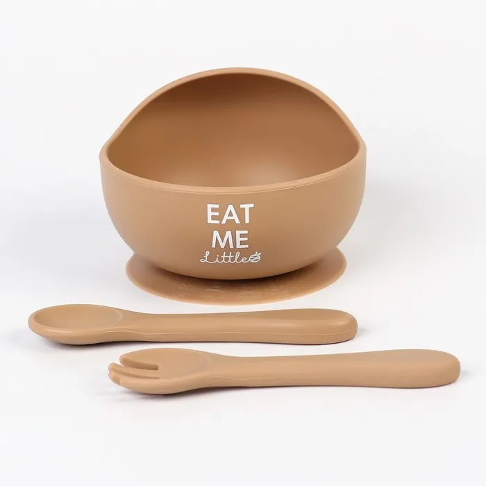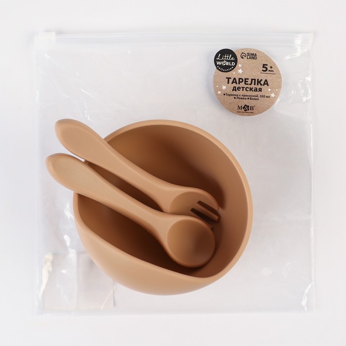 Тарелка детская на присоске и столовые приборы, M&B, силикон, бежевый — Характеристики