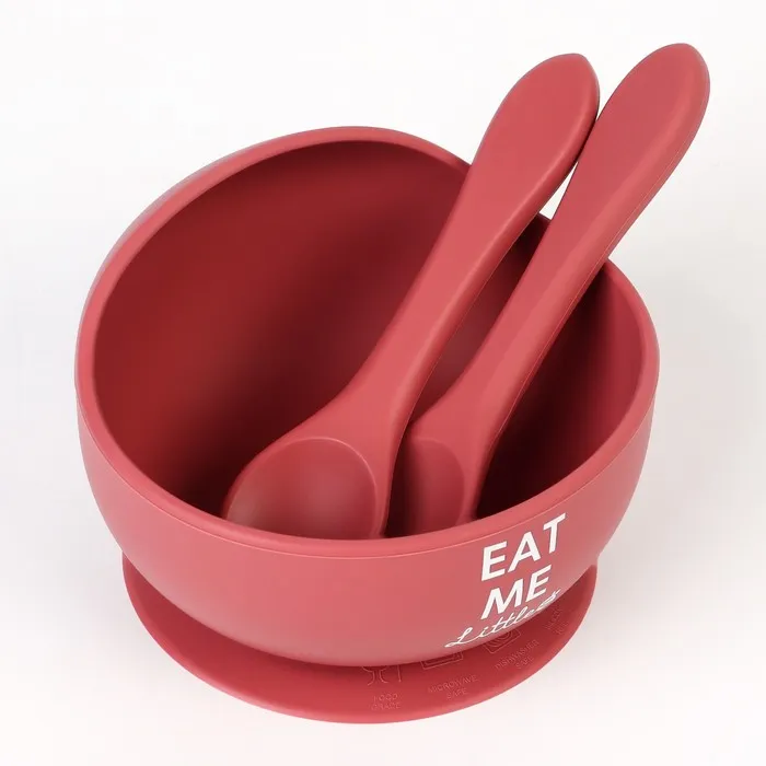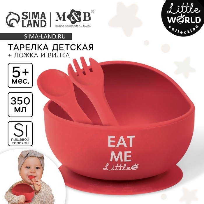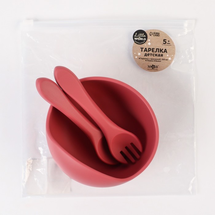 Тарелка детская на присоске и столовые приборы M&B, силикон, вишневый — Характеристики
