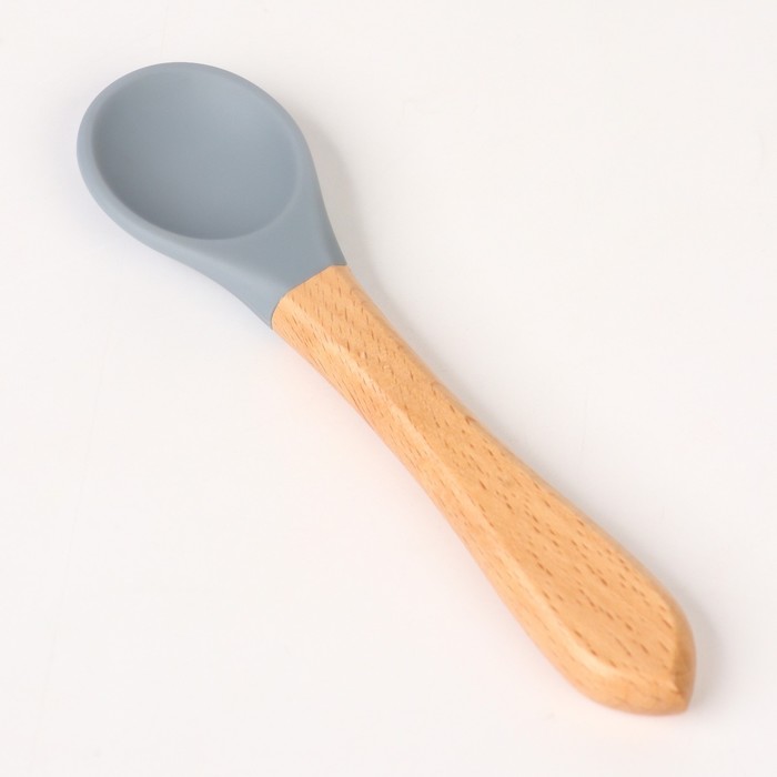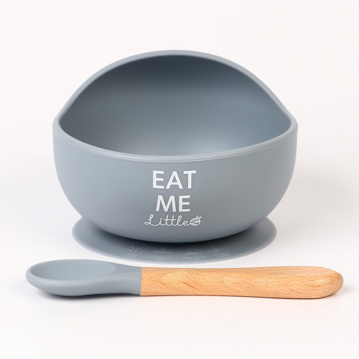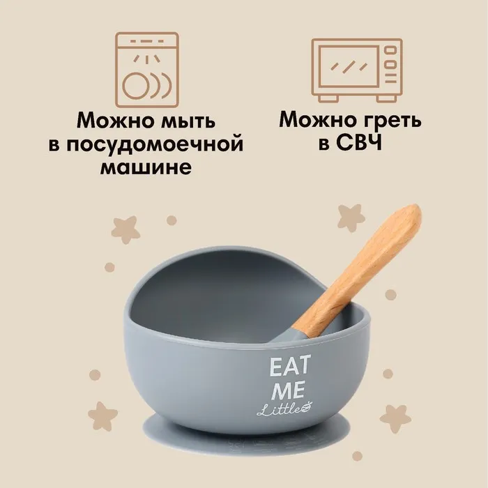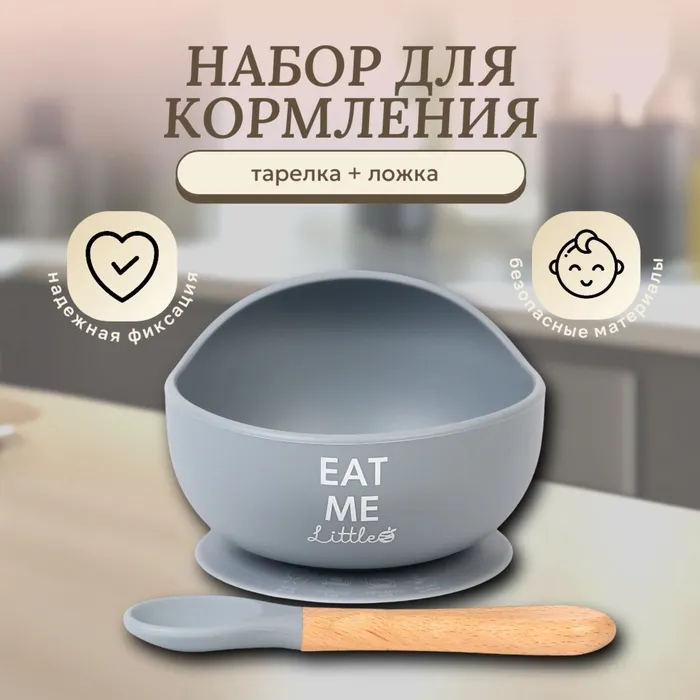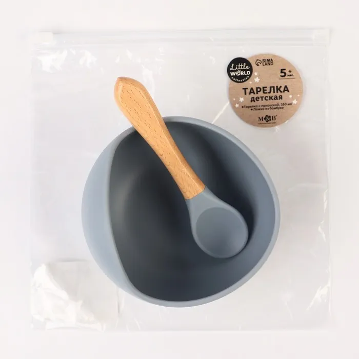 Тарелка детская на присоске, ложка, M&B, силикон, серый — Характеристики