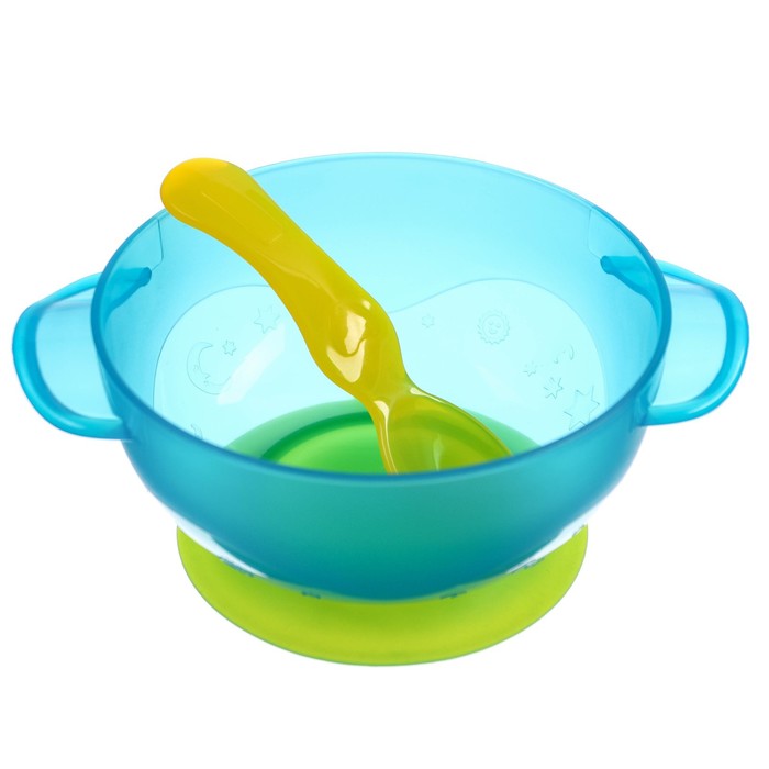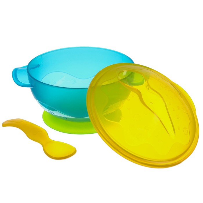 Тарелка детская на присоске, с крышкой, ложка, бирюзовая — Характеристики