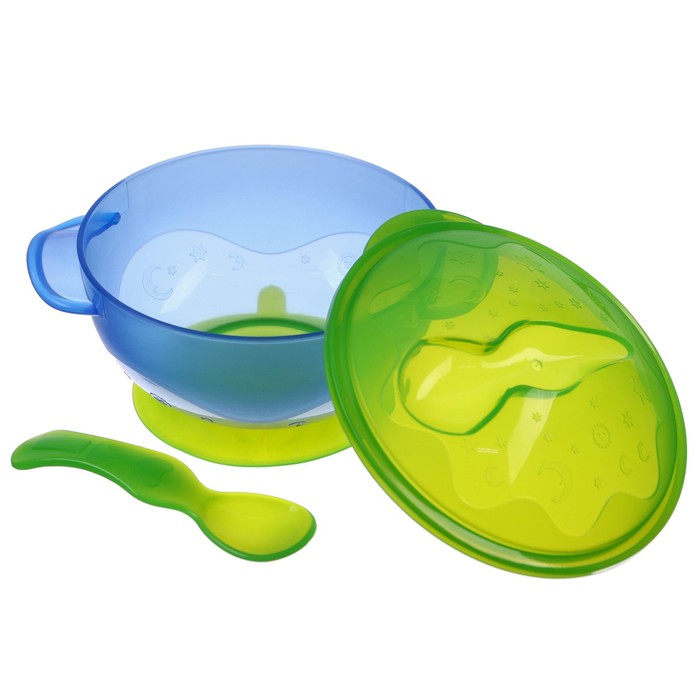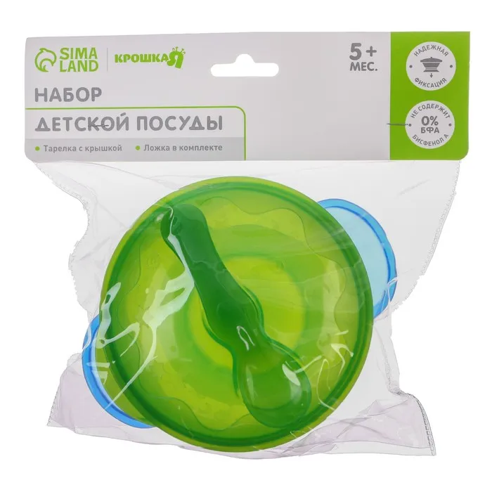 Тарелка детская на присоске с крышкой, ложка, Крошка Я — Характеристики